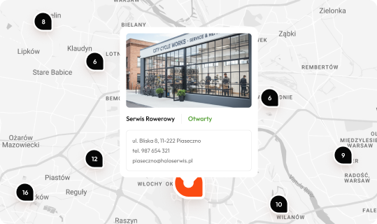 Zostajesz widoczny w oficjalnej mapie HALO! Serwis oraz w kampaniach kierowanych do użytkowników szukających serwisu w swojej okolicy.